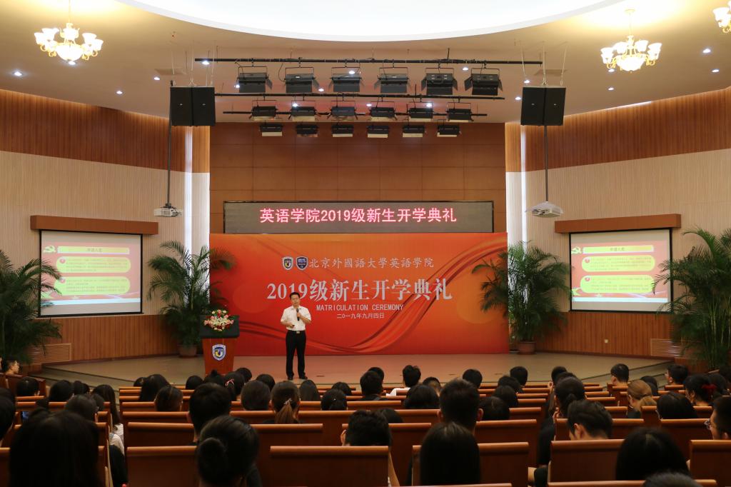 2019年9月4日上午,澳门pg官方电子平台2019级新生开学典礼于阿语楼国会厅顺利举行。澳门pg官方电子平台院长张剑、党总支书记路兴、澳门pg官方电子平台副院长张莲、党总支副书记孟庆琨、院长助理吴文安,各研究中心主任、本科生主任、教师代表、辅导员以及2019级研究生、本科生参加本次开学典礼。