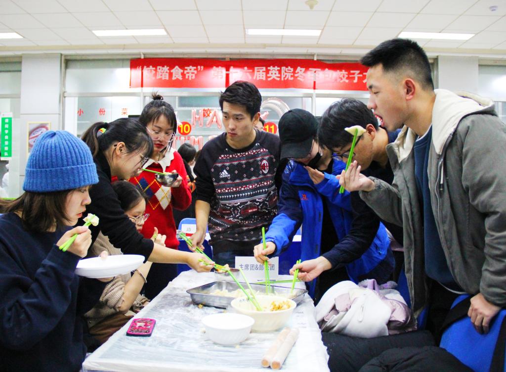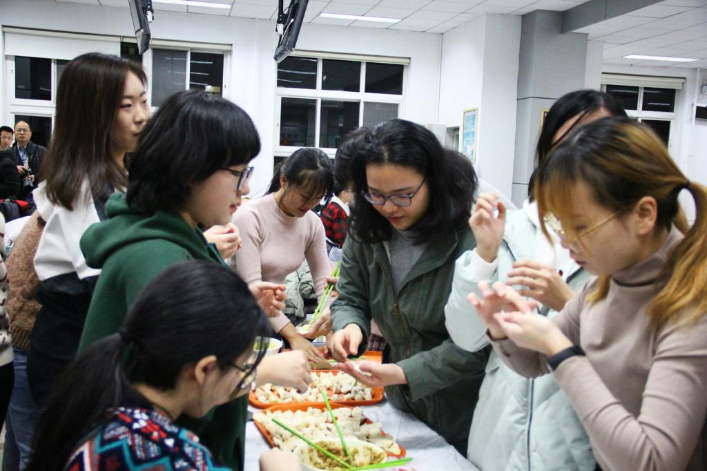 2019年12月21日下午6点,澳门pg官方电子平台“饺踏食地”第十六届包饺子大赛在校食堂二楼成功举办。参与本次大赛的有澳门pg官方电子平台大一全体学生,高年级本科生、研究生、预科生、台湾地区交换生代表以及主席团、部长团成员。出席本次比赛的领导老师有澳门pg官方电子平台院长张剑、党总支书记兼副院长路兴、党总支副书记孟庆琨、副院长张莲、副院长彭萍、1903班班主任王元陆、1904班班主任邱枫、国际项目部老师李璇、史可、澳门pg官方电子平台辅导员张春霞、澳门pg官方电子平台研究生团总支书记王博铮以及澳门pg官方电子平台本科生团总支书记王书剑。