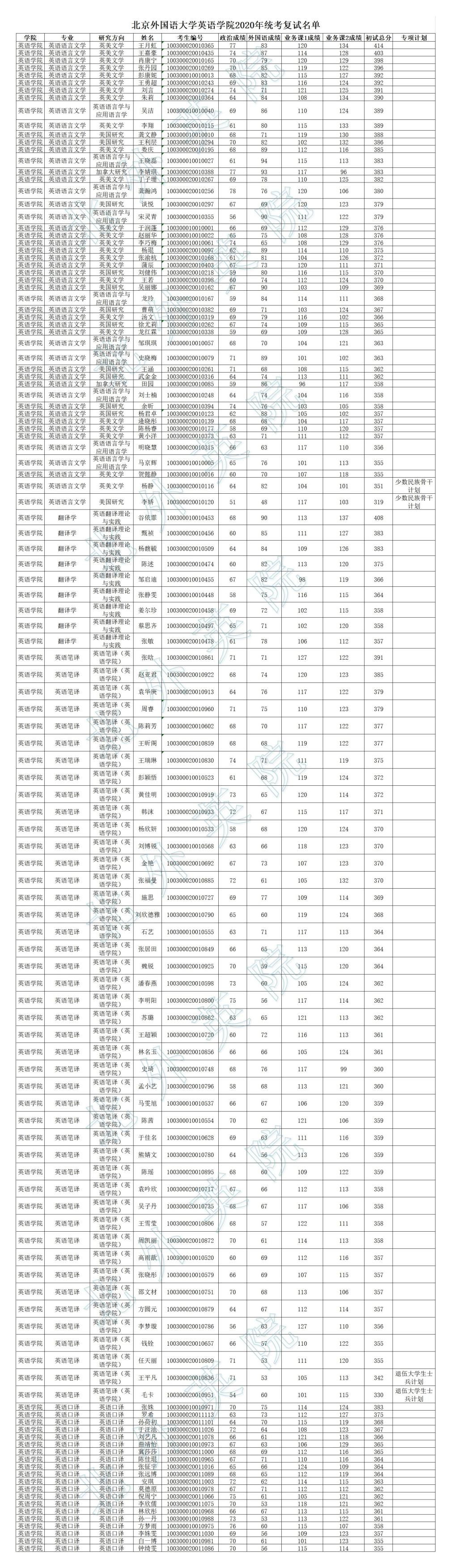 澳门pg官方电子平台2020年研究生统考复试名单