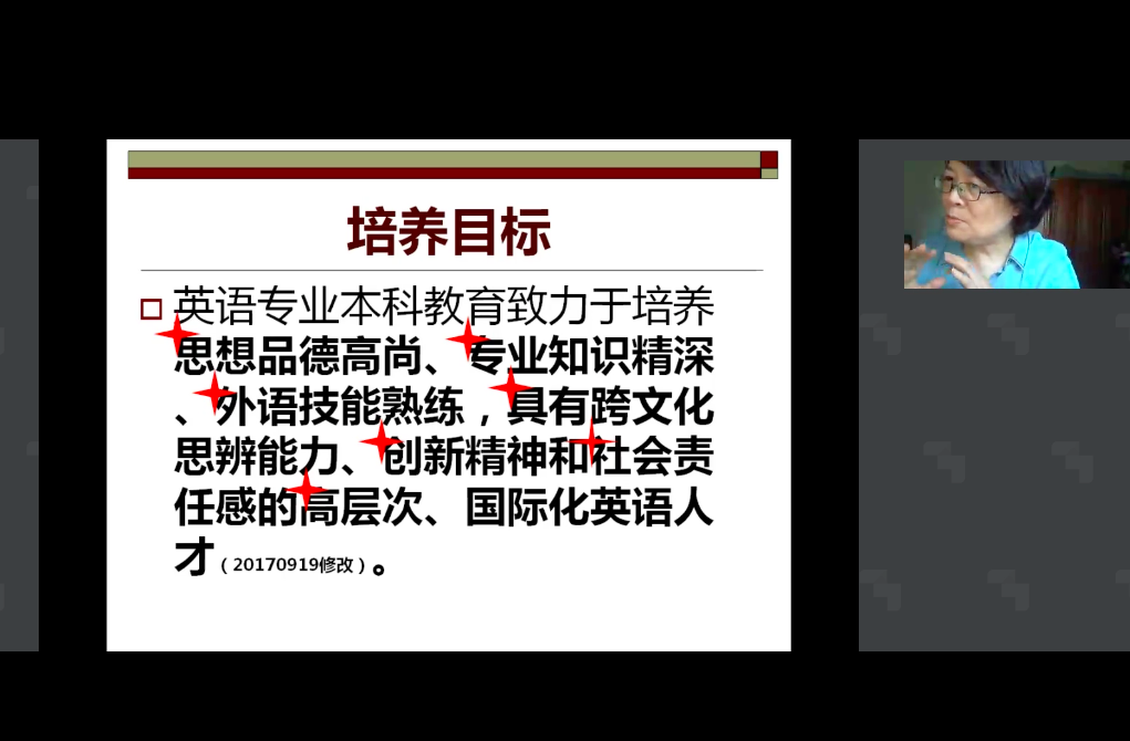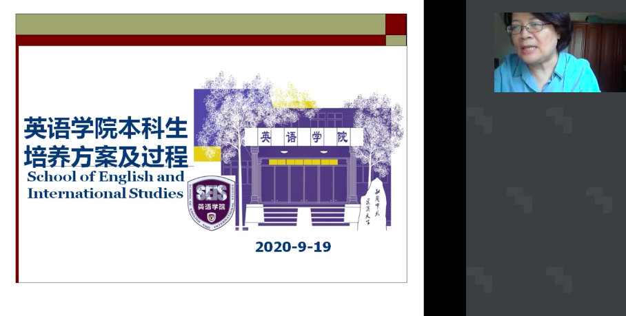 在会议之初,张莲老师在会议中强调了英语专业本科教育的培养目标,重点解读关键词“高层次”和“国际化”。