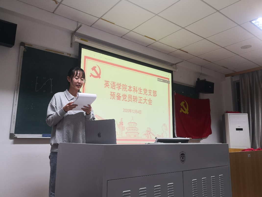 会上,王丽瑶等十四位预备党员依次宣读转正申请书,孙琳同志代表支部委员会向大会报告了对预备党员的考察情况,在场有投票权的正式党员进行无记名投票。大会同意以上十四位同志按期转为中共正式党员,报学院党总支和学校党委审批。