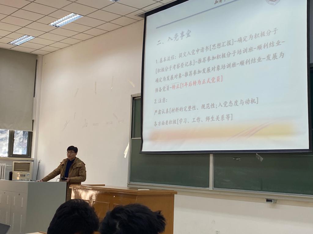 于老师从五个方面就相关工作和注意事项进行了说明。一是征兵入伍相关事宜。于老师就2021年春季征兵的具体时间、报名流程、资助补贴、退役待遇、优惠政策等情况逐一进行解读,提醒同学们提前了解,与家长沟通,有意向的同学可提前准备材料,按照要求进行相关的报名、体检。二是入党事宜。于老师详细介绍了入党的基本流程,强调了入党态度与动机的重要性,指出要严肃真诚,踏实认真,在学习、工作等各个方面要严格要求,做好表率。既要从行动上入党,更要从思想上入党。要严格按照程序,确保材料的规范性、完整性、及时性。三是短期交流交换。于老师就学院建立的交换交流院校向同学们做了介绍。对短期留学项目和交换项目的区别,以及申请交换的相关要求作了说明。由于境外疫情形势的严峻性及发展不可控性,届时能否顺利成行未可知,有意向参加短期交流的同学,尤其是有意在大三上学期准备交流的同学,一定要做好两手准备。四是安全问题。于老师从疫情防控、冬季流行性疾病预防、网络诈骗、用电用火安全、禁毒防艾等方面,结合一个个实际案例,向同学们强调了健康安全的重要性。再次督促同学们务必警钟长鸣,时刻保持防护意识,不能掉以轻心。五是就同学们关心的几个问题,一一解答。如专四考试安排、社会实践学分认定、形式政策课教学、核酸检测报销等。
