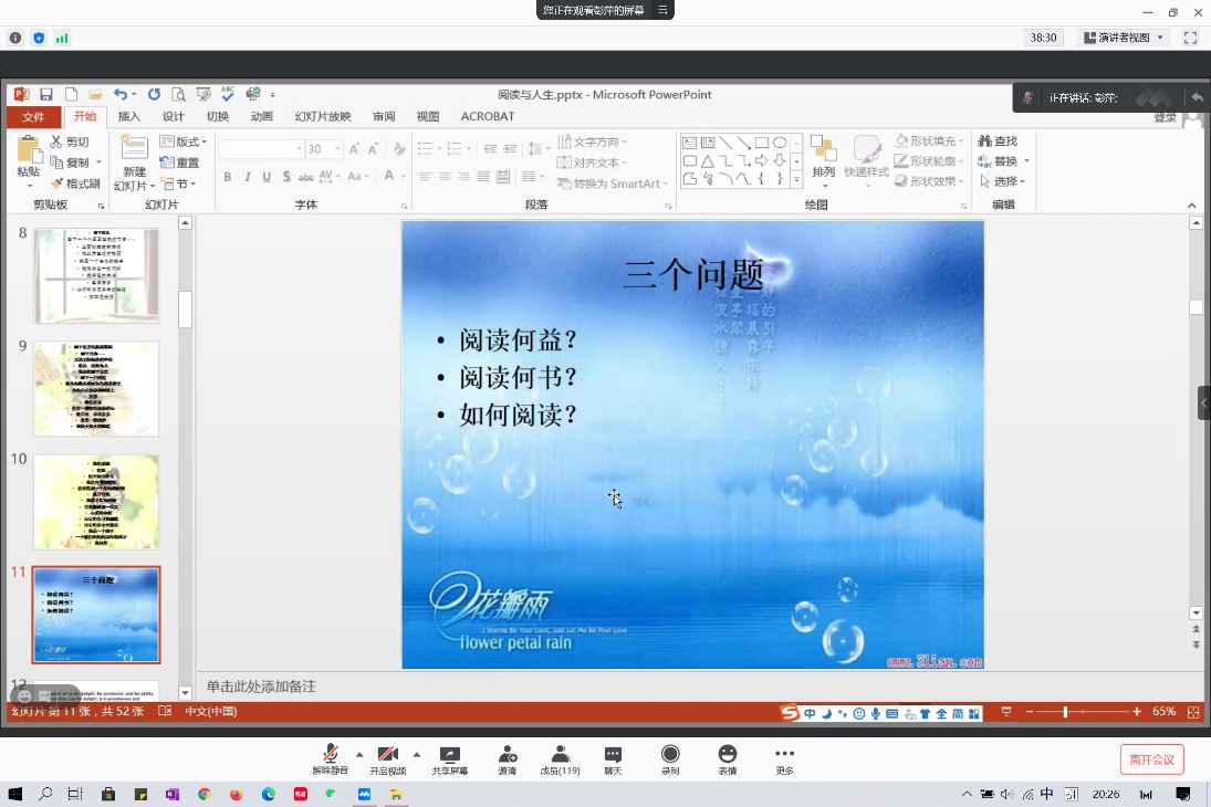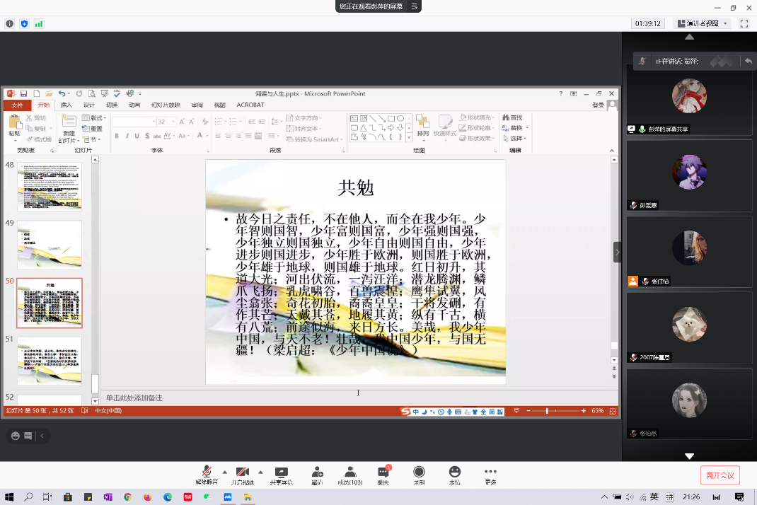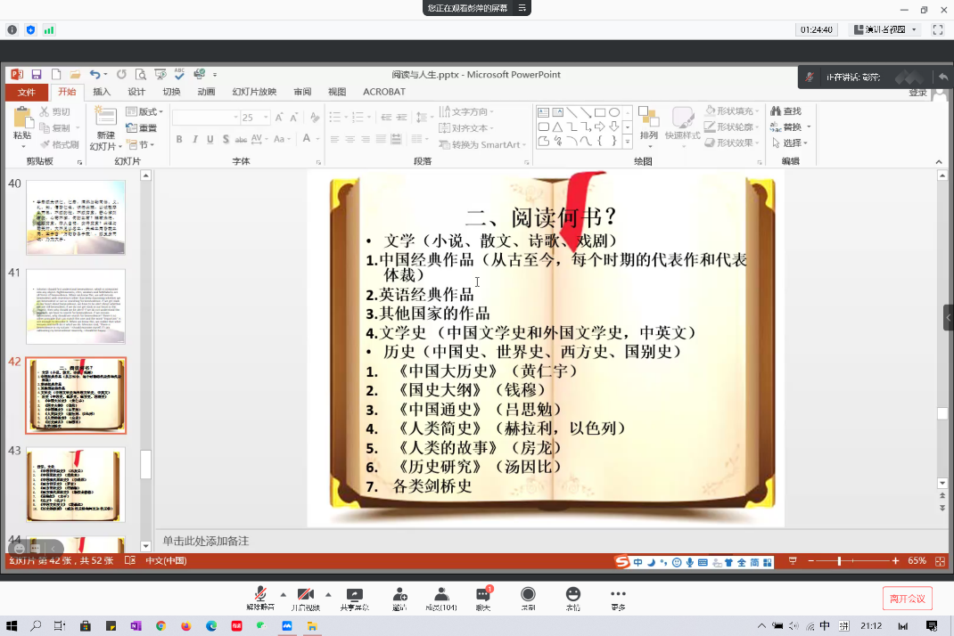 2021年1月25日晚,澳门pg官方电子平台在假期伊始举办 “阅读与人生”线上专题讲座。本次讲座邀请澳门pg官方电子平台副院长彭萍教授为同学们讲述阅读与人生的关系,带领大家体验阅读的乐趣,掌握阅读的方法。