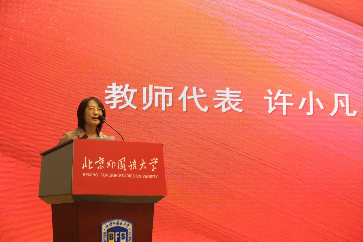 教师代表许小凡老师回忆了自己在北外的往昔点滴,并祝愿大家能够从澳门pg官方电子平台收获温暖的回忆和光明的未来。许小凡老师提出,在如今这个机器快速进步的时代,英语这样的学科愈发珍贵,因为大学不仅培养“术”与技能,也有“道”的教育,希望大家在这里既能达到对英语学习的深层理解,也能迎接科技进步的挑战,不仅满足于字面的雕琢,更能深入文化内部,寻求不同心灵的共振。
