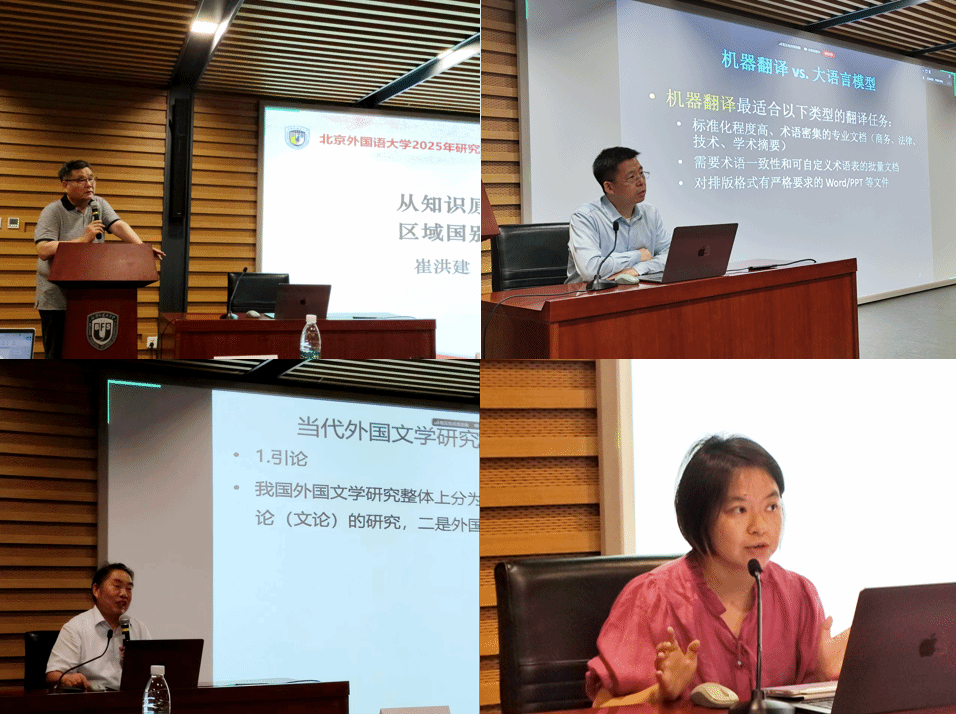 论坛特邀四位领域专家做主旨发言。北京外国语大学国际组织学院崔洪建教授探讨“从知识原创到微言大义:区域国别学如何破题破局”,提出跨学科研究的前瞻路径;北京航空航天大学田俊武教授以“当代外国文学研究的困境和突围之路”为题,剖析文学研究的时代挑战;澳门pg官方电子平台孙三军教授聚焦“大语言模型与翻译研究的范式突破”,揭示AI对翻译实践与研究的重大影响;中国社会科学院李倩研究员从语音学视角分析“表层音变现象的多重来源”,展现语言学实证研究的深度。北京外国语大学陈颖芝、韩一铭、董琎晗,北京科技大学孙培真作为各方向研究生代表作主旨发言。