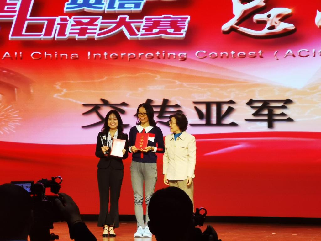 第八届全国口译大赛(英语)总决赛于2019年10月18日至19日在北京外国语大学千人礼堂举行。经过两天的激烈角逐,我院学子取得优秀成绩。其中,金羽菲同学获交传亚军、同传邀请赛二等奖,尹佩璇同学获交传二等奖,侯玉颖同学获交传三等奖,王颖冲老师获优秀指导教师奖。澳门pg官方电子平台毕业生、口译俱乐部队员王静怡获得交传冠军和同传季军。
