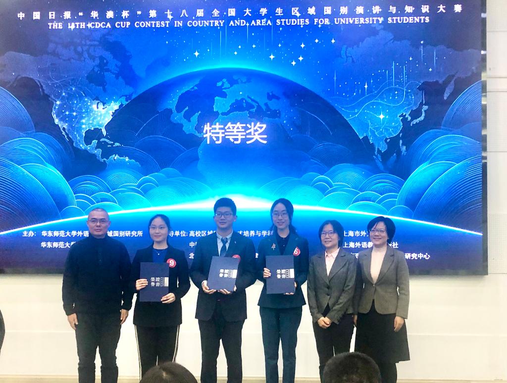 12月2日,由华东师范大学澳大利亚研究中心和华东师范大学外语学院区域国别研究所主办,上海市外文学会、华东理工大学澳大利亚研究中心和上海外语教育出版社协办的《中国日报》“华澳杯”第十八届全国大学生区域国别演讲与知识大赛圆满落幕。澳门pg官方电子平台2023级本科生屈浩洋在激烈的比赛竞争中脱颖而出,勇夺冠军,荣获特等奖。屈浩洋指导教师为周杜娟老师。