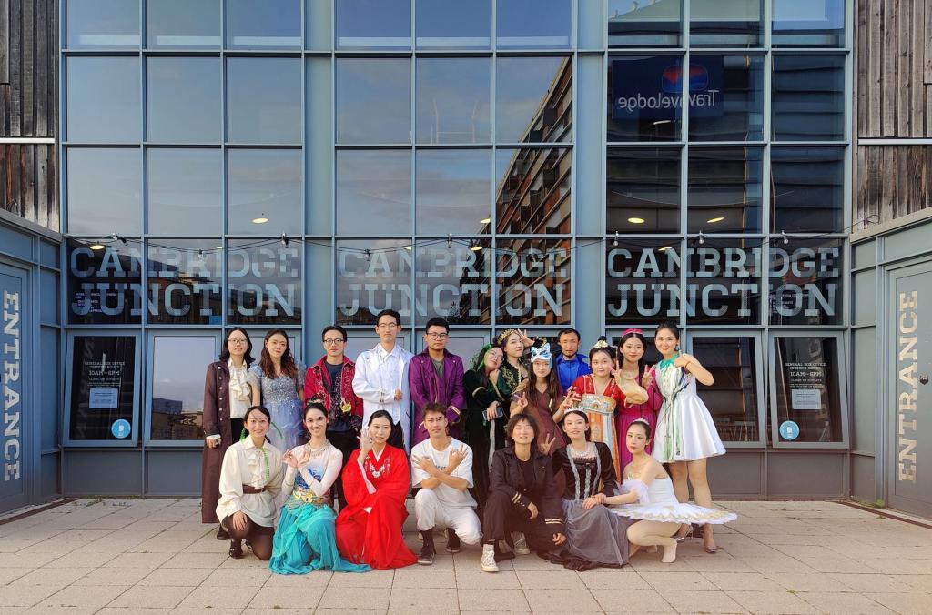 8月19日上午,实践团同学进行了抵英后的第一次联排,确认了在8月25日正式演出中可能会遇到的台词、道具、服装、走位和站位问题。当日下午,实践团前往预定好的演出场地剑桥岔道口演剧厅(Cambridge Junction)实地考察,了解到这家演剧厅已有30年的历史,致力于为剑桥市等地的观众提供丰富多彩的文艺节目,并以委托创作新作品、举办研讨会和排练来促进艺术家和制作人的成长,向民众展示了现场表演的魅力和创新思想的力量,堪称剑桥市的文化枢纽。这家演剧厅可容纳210人,舞台可铺设专用地胶,符合芭蕾等舞蹈节目的表演要求,舞台后方配有两间含盥洗室和卫浴设施的化妆室,便于演员化妆和换装,在主舞台与化妆室之间、观众席和灯光音响控制室之间都设有数道防火门,是个安全系数较高的演出场所。在实地考察过程中,实践团成员也了解到这家演剧厅的音响设备质量颇佳,但舞台照明设备较陈旧,聚光灯投下的光束位置无法改变,给实践团的演出带来了一定的条件限制,实践团师生为此重新调整了舞台站位以适应这种演出环境。
