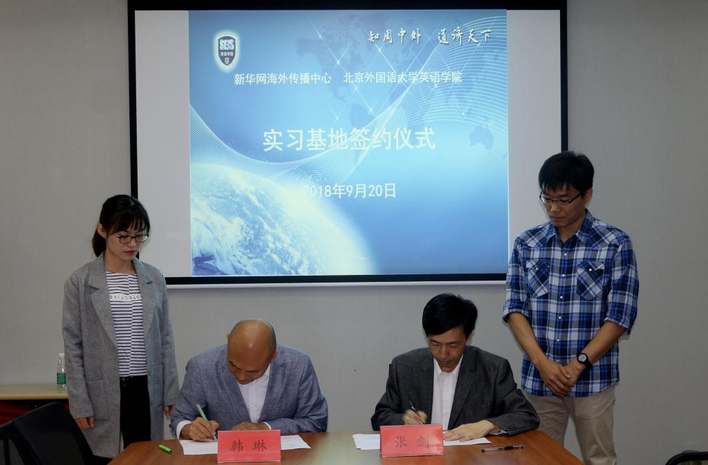 2018年9月20日上午10点,在澳门pg官方电子平台111会议室,澳门pg官方电子平台与新华网海外传播中心签署实习基地协议。新华网海外传播中心常务副总监韩琳、澳门pg官方电子平台院长张剑代表双方签署协议。
