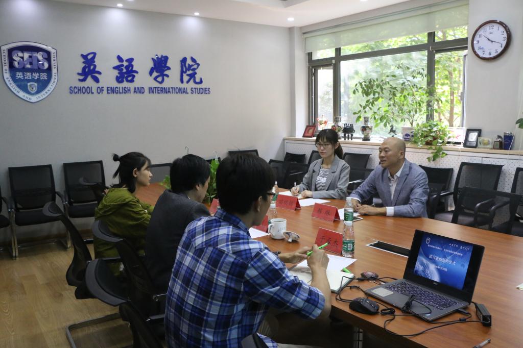 首先,张剑院长代表澳门pg官方电子平台感谢新华网海外传播中心为澳门pg官方电子平台学生提供的实习机会。他说,澳门pg官方电子平台在本科教学方面,多年来一直坚持小班教学,精英化培养,注重对学生英语基础的夯实。在研究生培养方面,近年来规模有所扩大,基本与本科生规模持平。研究生培养分国别研究、语言学、文学、翻译学及MTI口笔译等多个方向,学科口径比较宽。技能的训练以及多元的研究方向,为澳门pg官方电子平台学生将来在各个领域的发展提供了保障。
