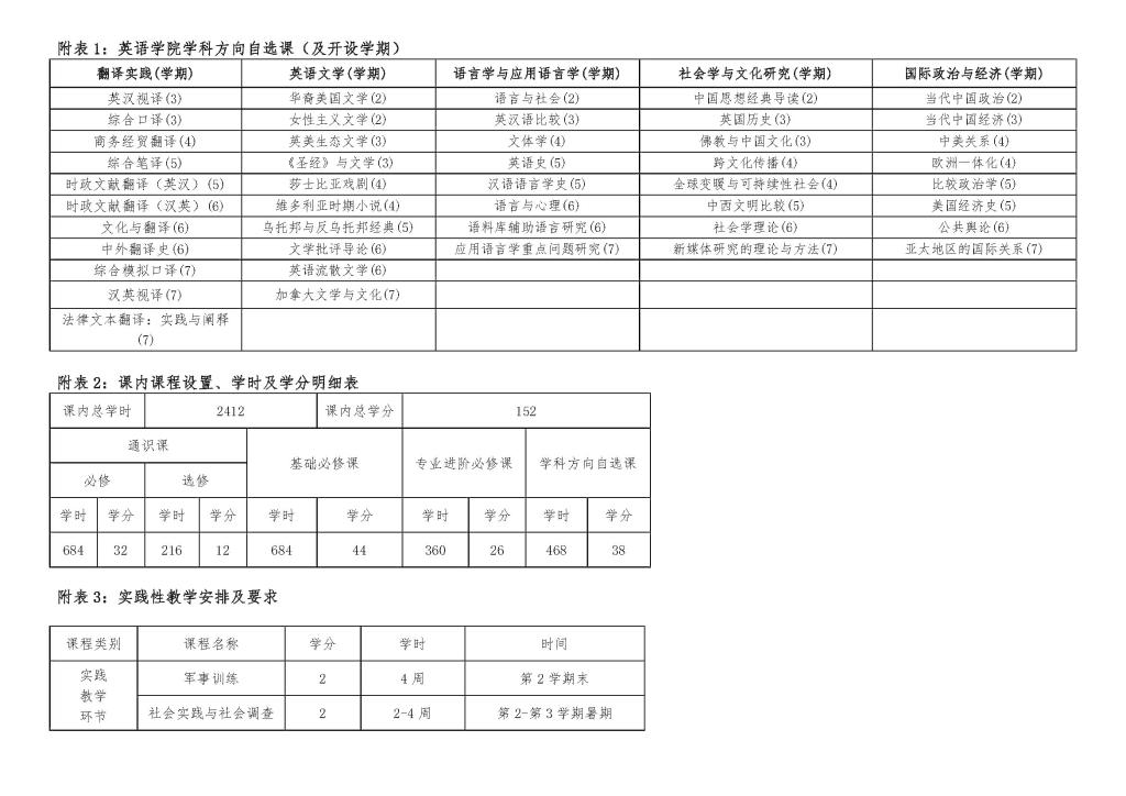 澳门pg官方电子平台英语专业本科培养方案(2016)