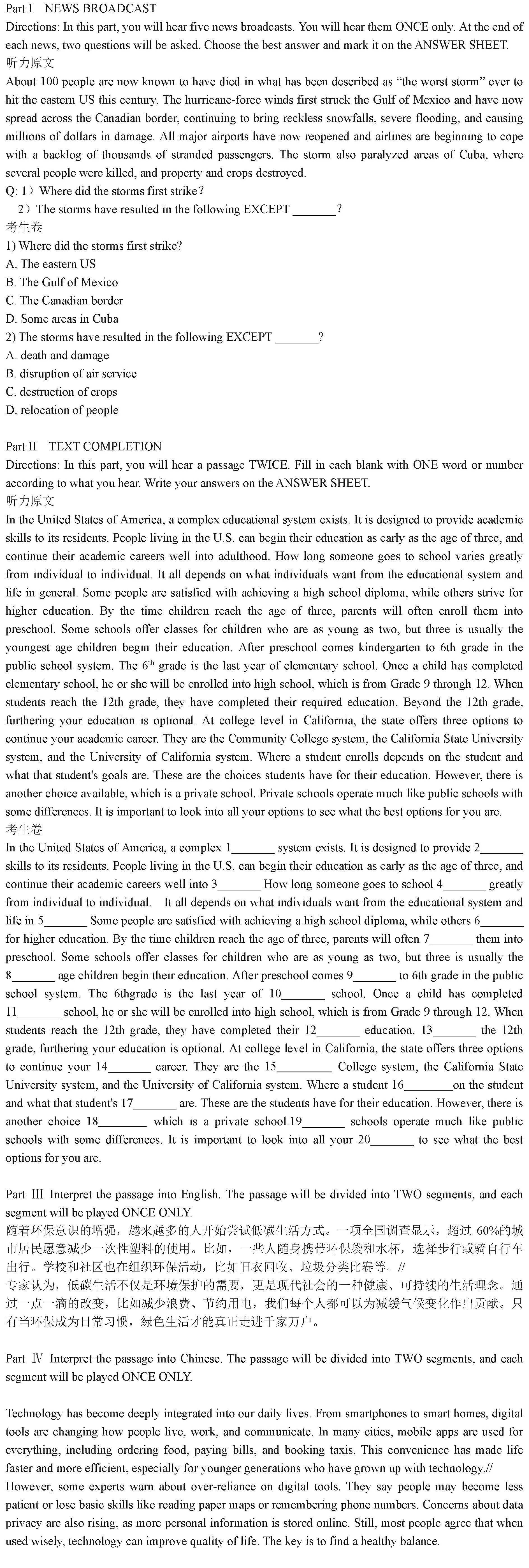 附:英语听力与口译题型示例